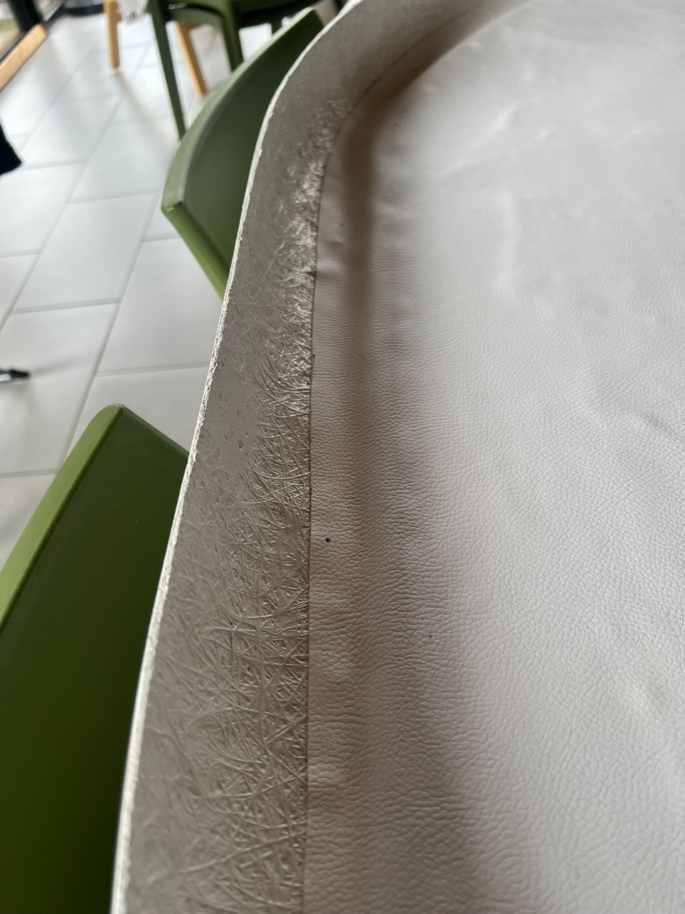 Après c'est peinture sur l'extérieur et le rebord intérieur, isolant et simili cuir.
