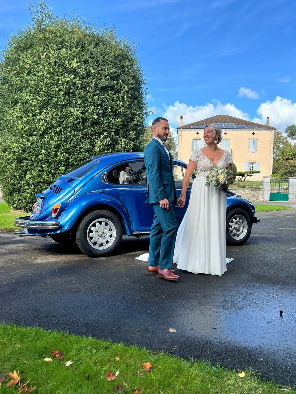 Nous sur notre 31, des copains se mariaient et c'est avec notre Cox que la mariée est allée avec son papa à la mairie, puis avec son mari à l'église.