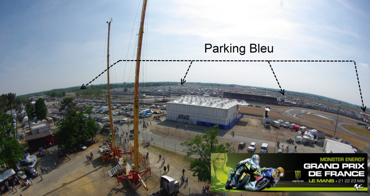 En effet nous nous installons sur le parking Bleu entre l'aérodrome et le circuit en